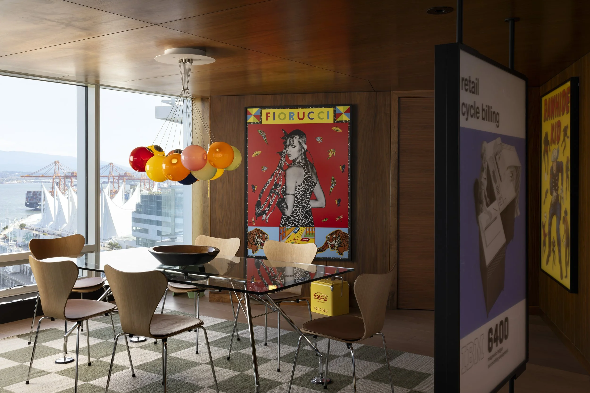 Drawing on his signature pop-art aesthetic, Coupland has integrated bold visuals, custom-designed furniture, an in-suite bar, and unexpected design moments that prompt both introspection and conversation. The 1200-square-foot space, offering sweeping views of Vancouver’s waterfront and mountains, feels less like a generic suite and more like a carefully curated studio.