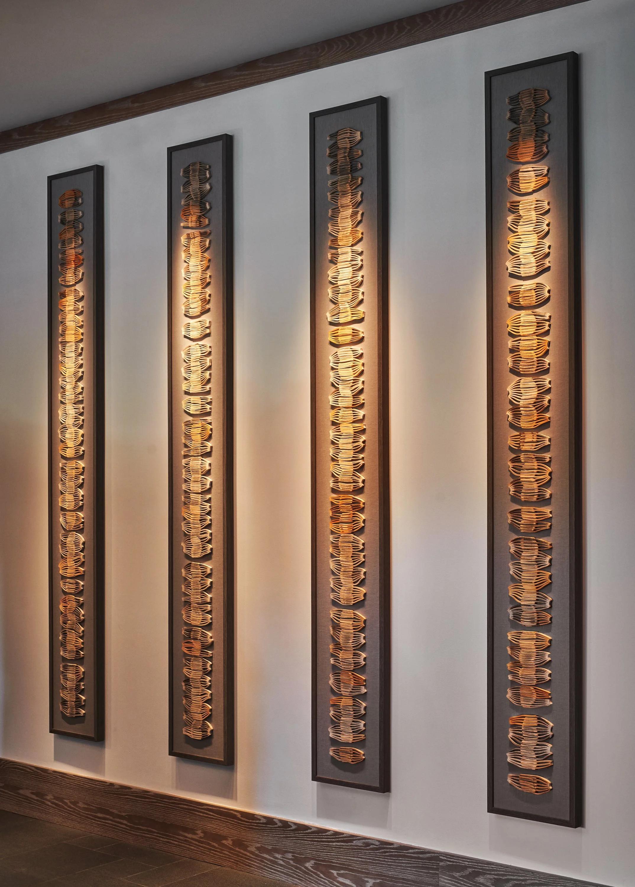 We collaborated with award-winning Montana-born artist Jessica Drenk whose practice investigates the intersection between the natural and the man-made by exploring diverse materials in her artistic process. Repurposing everyday objects as materials for transformation, Drenk creates sculptures and installations that reference shapes and forms found in the natural environment. In her two site-specific commissions for Montage Big Sky’s lobby area, she used the pages of found books and gave them new life by repurposing and transforming them into stunning dimensional artwork.