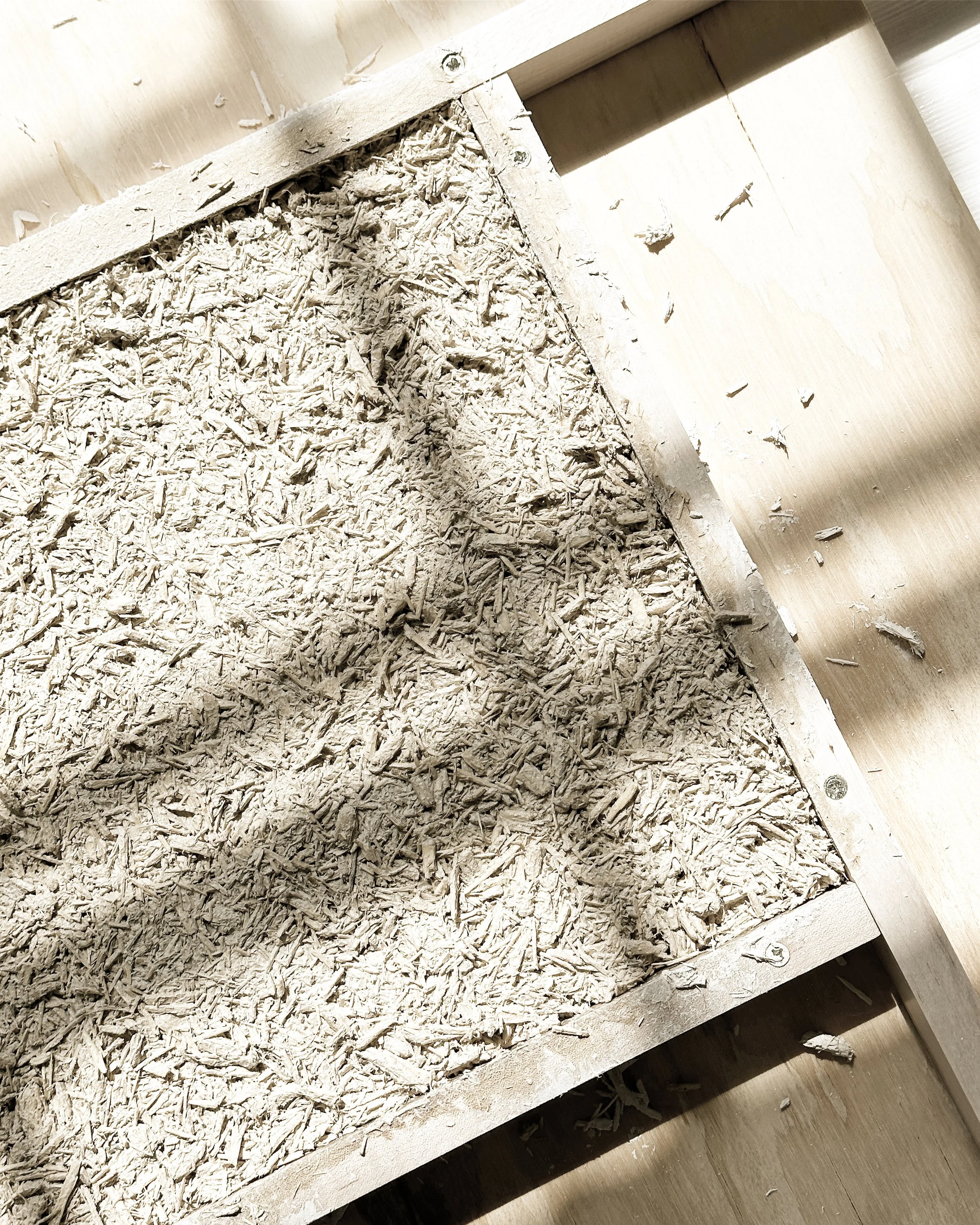 I started by mixing hemp hurds with lime and water and then packed the mixture into a mold. After a few days, the hempcrete was dry enough to remove from the mold and then needed to dry for another day. We’re having a summer heat wave in LA right now so the drying time was faster than usual. Then I used a piece of stone I’ve been carving that’s a similar shape I’ve used before in my prints and paintings. I traced around the stone with a pencil onto a piece of paper, then cut the shape out and applied it to the surface of the hemp with tape. Then I added a layer of lime plaster (mixed with water, lime, and sand) and covered the surface of the dried hempcrete.